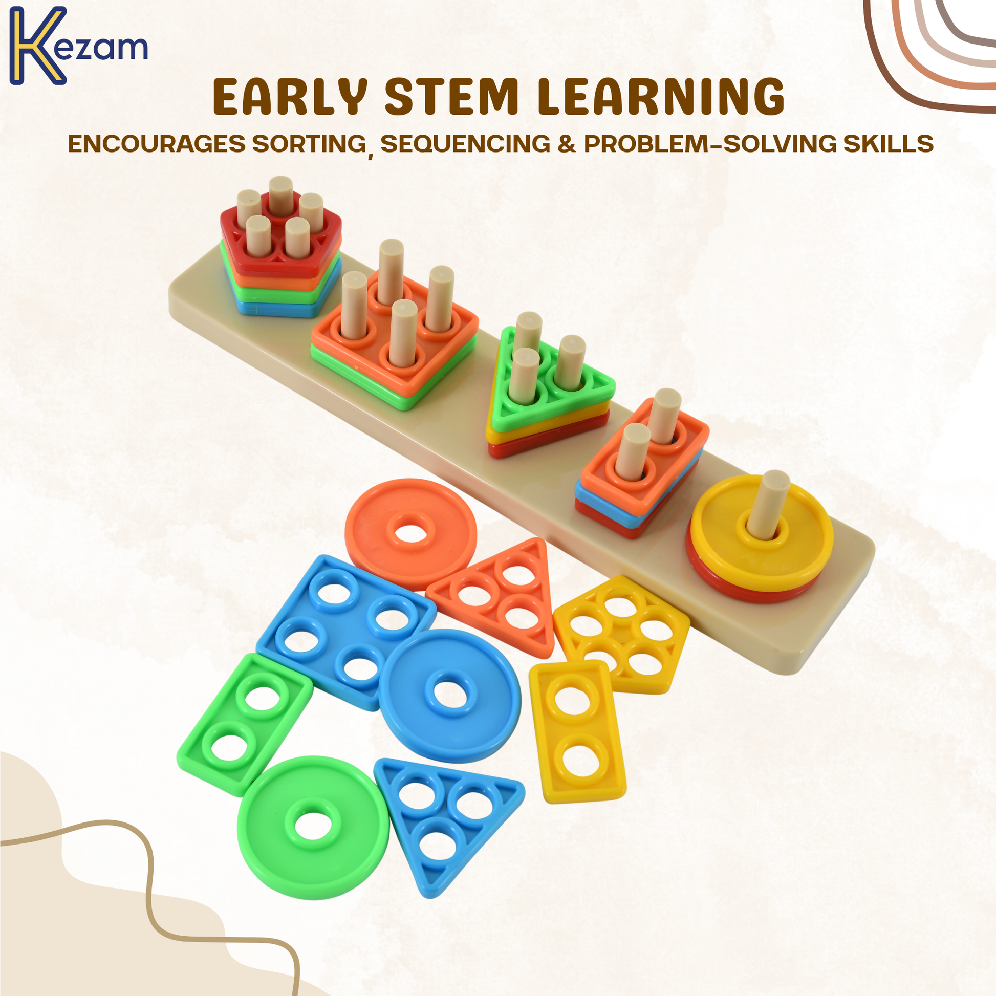 Introduce your child to early learning through fun and hands-on play with this Colourful Shape Stacking & Sorting Toy by Kezam Toys. Designed to help toddlers recognize shapes, colors and sizes, this engaging educational toy encourages logical thinking and motor skill development.