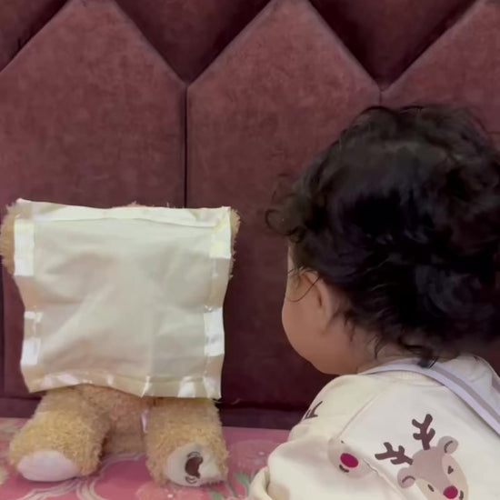 Bring endless smiles and laughter to your little one with the adorable Peek-a-Boo Talking Teddy Bear! This soft, cuddly bear plays an interactive game of peek-a-boo using its silky blanket, delighting babies and toddlers with every move. With its gentle voice, sweet giggles, and plush fur, it’s the perfect cuddly companion for playtime and comfort.
